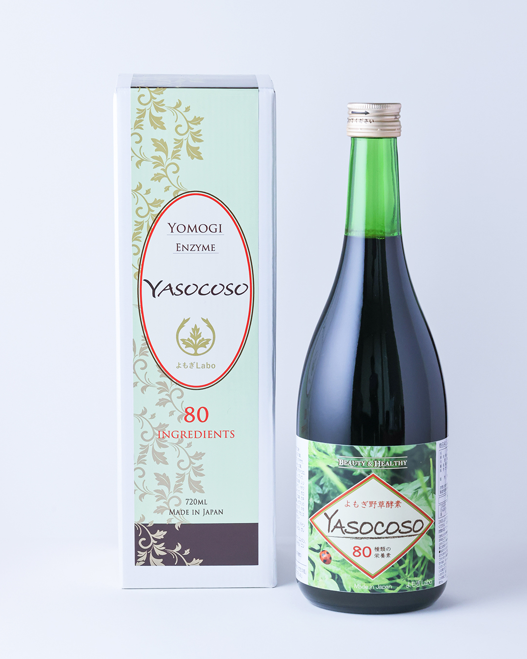 よもぎLaboの“よもぎ野草酵素 YASOCOSO”は、新潟・上越地方の大地で育った良質なよもぎをはじめ、57種類の野草、さらに果物・野菜・海藻23種類、合計80種類もの天然植物原料を使用。多彩な素材をじっくり発酵させることで、それぞれの恵みを引き出しています。(詳しくはこちらのコラムをご覧ください)